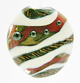 Just reminded me of those rich red berries against freshly fallen snow. Encased red base with goldstone chips and an amber/black twistie.