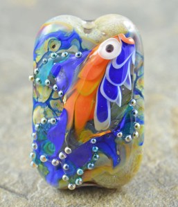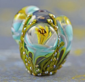 These designs take me back to my acrylic painting days. Using my own hand pulled encased stringers I carefully ‘paint’ the entire floral design petal by petal, leaf by leaf, onto the surface of the bead. It’s a painstaking process but I love the intricate and detailed results.