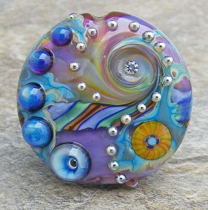 I have been a busy bee making lots of murrini lately. I really enjoy making the canes – I think it’s the excitement of layering color after color, anticipating the ‘big pull’, and then the final ‘ahhh’ moment when I snip the long cane for the first time to see my miniaturized design inside.