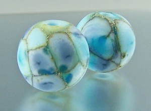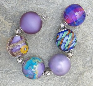 Waikoloa Village is the inspiration for this bead collection. I used colored glass in shades of lavender, blue, aqua and turquoise with bits of bright orange for a pop of color here and there.