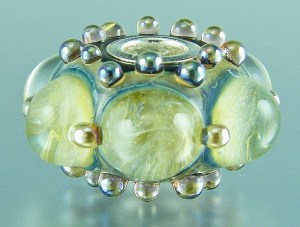 With the addition of the silvered ivory and Dichroic glass it was clear that this bead resembled something ‘other-worldly’, hence the name = Celestial.