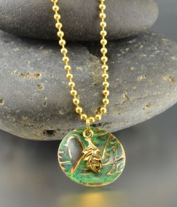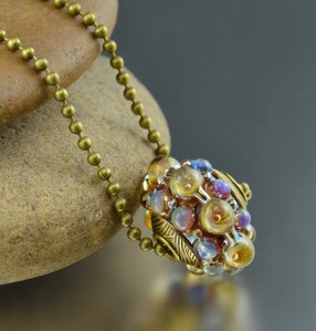 I created these new glass bead pendants with hand made natural brass bead caps, pairing them with a natural brass ball chain necklace for that ‘industrial’ feel.