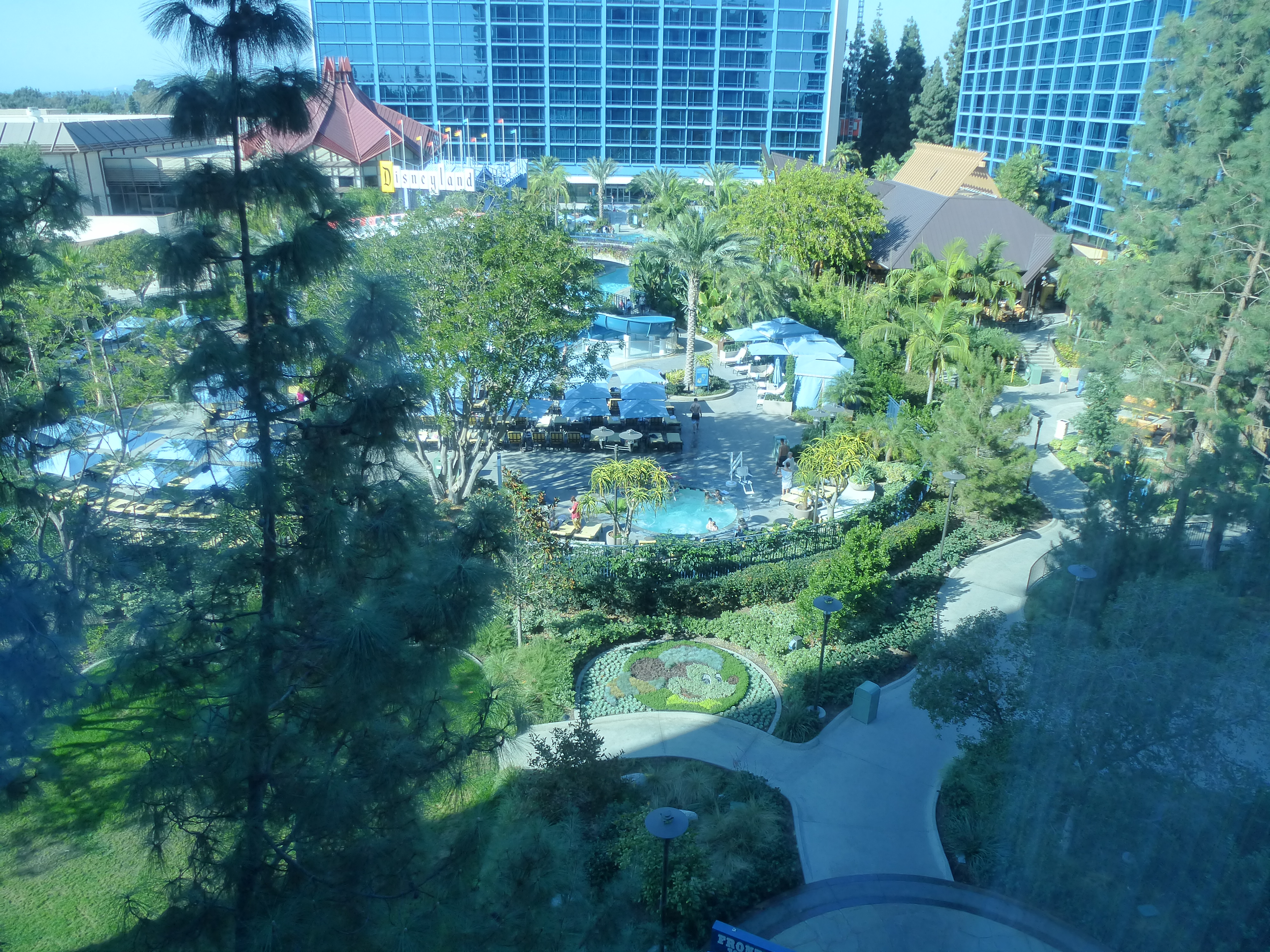 Here’s a quick peek at the view from our hotel room (notice Mickey in the shrubbery toward the bottom of the photo):