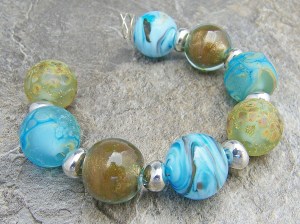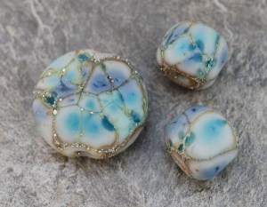 This set includes five medium sized 1″ lentil focals, one 1 1/4″ sized large lentil focal, and one of my large round ‘Pier’ style bead focals.
